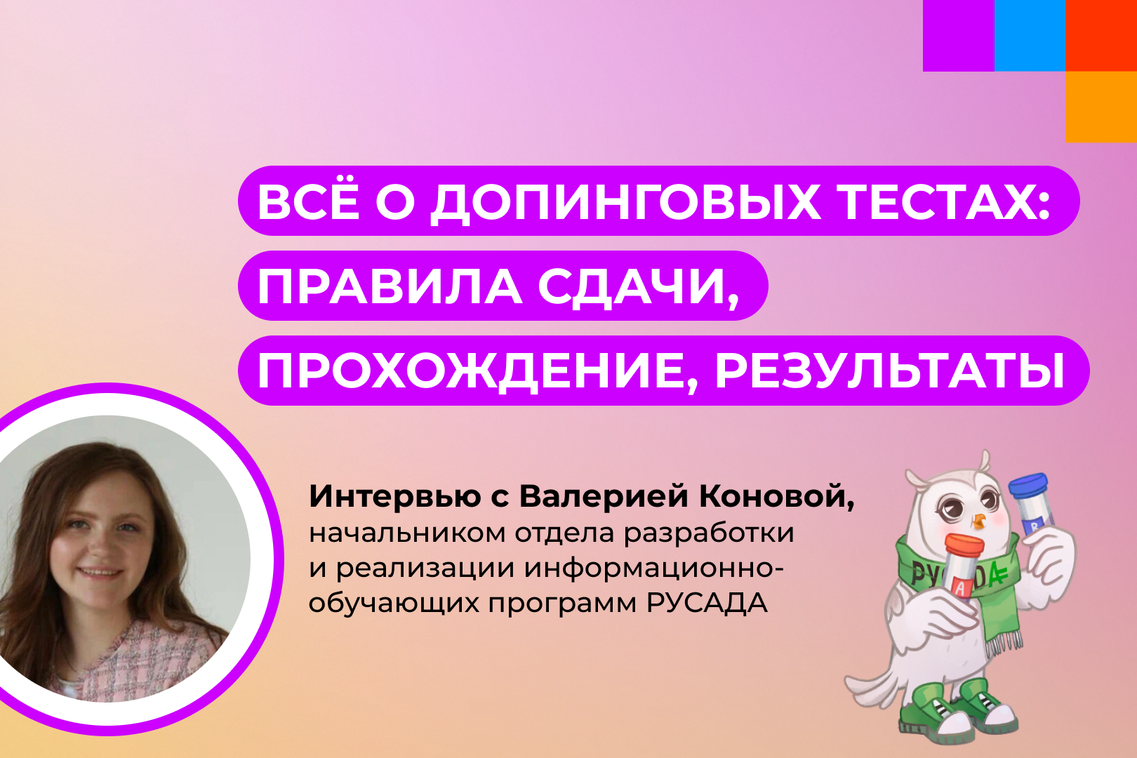 Вместе с Валерией Коновой, начальником отдела разработки и реализации информационно-обучающих программ РУСАДА, разобрались в процедуре сдачи допинг-тестов, чтобы спортсмены знали, к чему нужно быть готовыми.