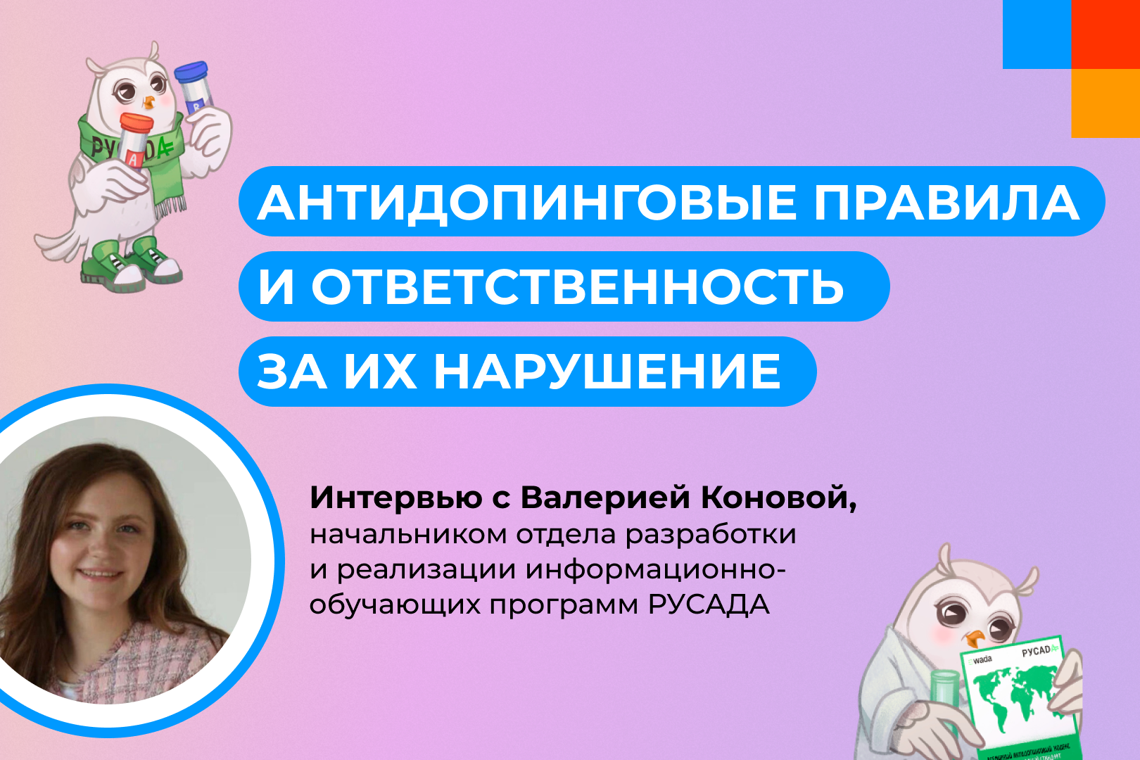 Вместе с Валерией Коновой, начальником отдела разработки и реализации информационно-обучающих программ РУСАДА, доступно рассказываем об антидопинговом законодательстве и ответственности спортсменов.